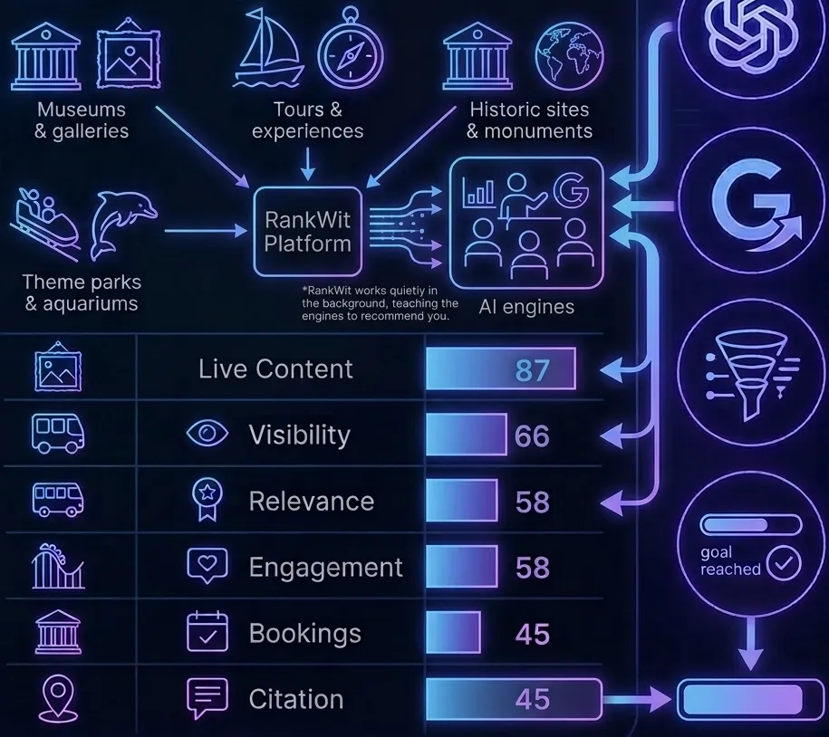 RankWit operates as your silent digital advocate, continuously refining how AI engines perceive, rank, and recommend your experience.